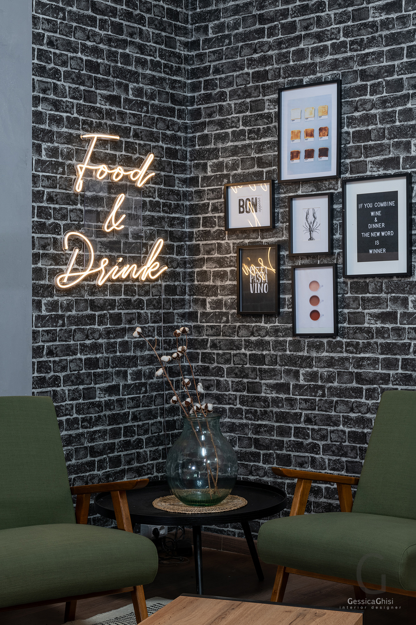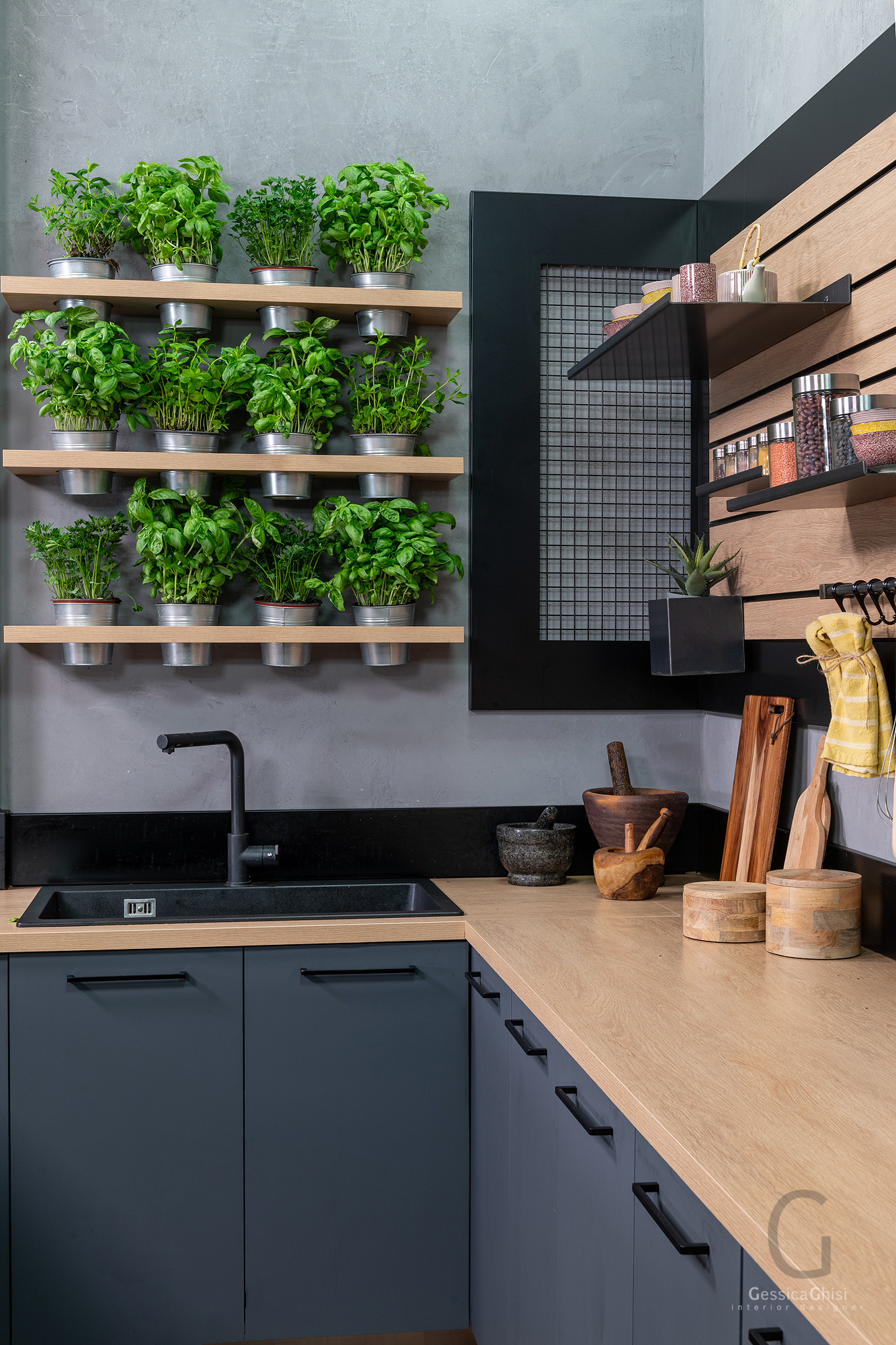 La parete dedicata alle erbe aromatiche, oltre a servire per cucinare, dà un tocco di vita alla stessa. Ma non ci siamo fermati a questa versione. Nel 2021, Luca mi ha chiamato per un piccolo cambiamento, che poi non è stato così piccolo. Abbiamo schiarito la pittura, aggiunto dei dettagli alla schiena e è nato il primo spazio per le “chiaccherate”, perché a noi piace parlare e condividere.
